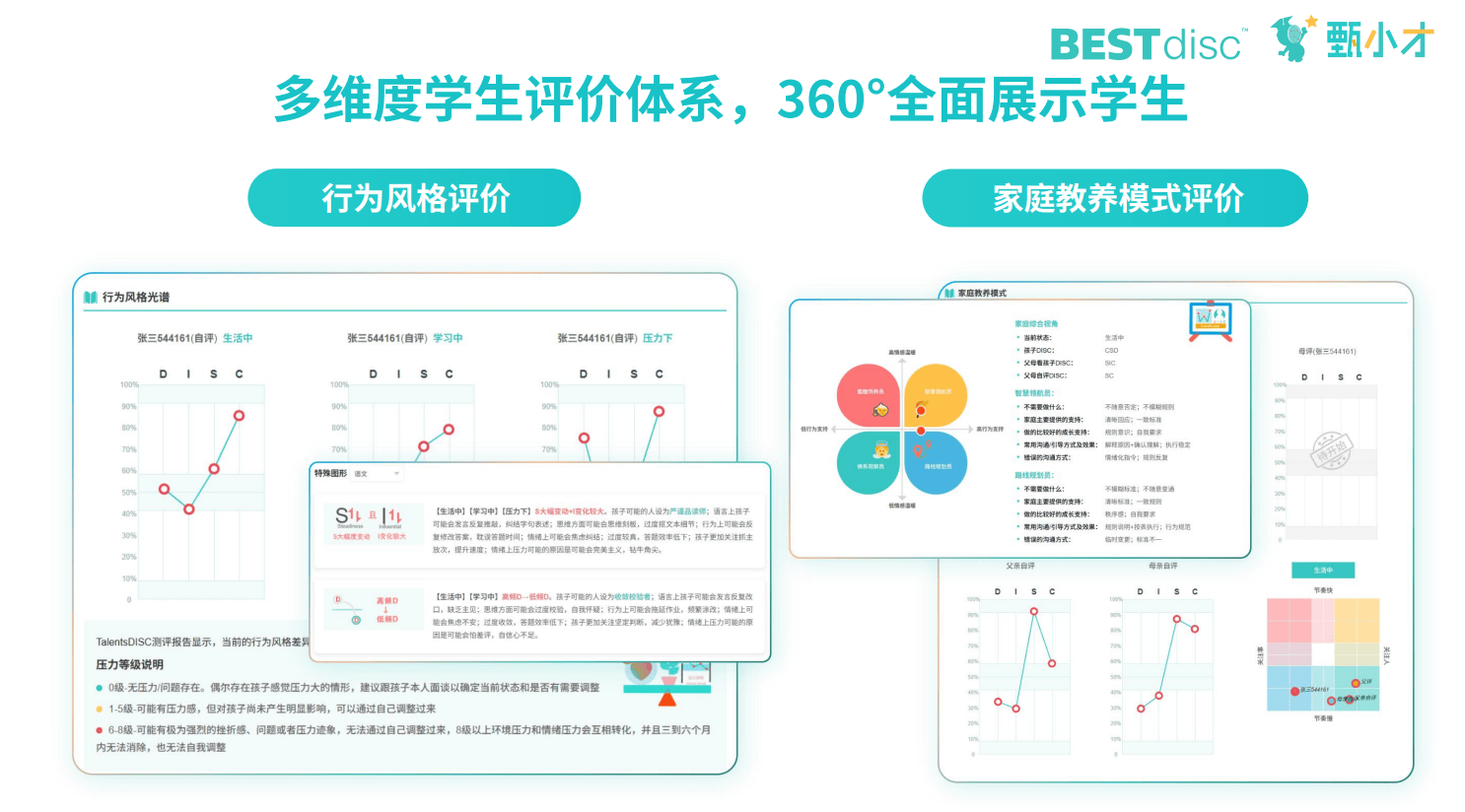 甄小才的360度评估包括学生自评、家长评价、教师评价三个视角,每个视角都提供了关于学生心理状态的重要信息,三个视角的信息相互补充,形成对学生的全面认识。