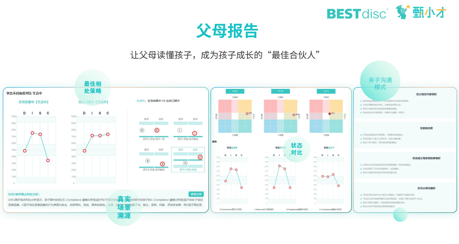很多家长对孩子的了解比较表面,主要关心孩子的学习成绩和生活起居,但不太关注孩子的心理状态。通过甄小才的测评报告,家长第一次系统性地了解自己孩子的心理状况,这对家长来说是一个重要的启发。家长会开始意识到,不仅要关心孩子的学习,还要关心孩子的心理健康。