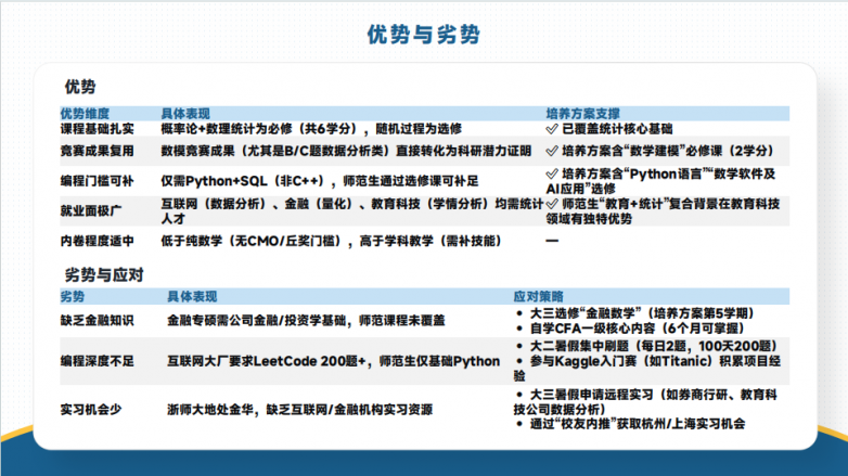 基于这份诊断报告,团队会为学员量身定制全周期升学规划方案,大到大学三年的整体成长时间线,小到每个学期的核心目标、每个月的任务清单、每周的跟进复盘,全部细化落地。针对大一、大二提前规划的学员,团队会提前梳理目标专业的保研核心加分项,指导学生选课避坑、规划绩点提升路径,提前布局对口科研项目与高含金量竞赛,全程跟进每一门课程考试、每一次竞赛备赛;针对大三进入保研冲刺期的学员,团队会快速补齐学员短板,精准制定“冲-稳-保”院校梯度,最大化发挥学员优势,规避升学风险,真正做到“一人一策,一生一案”。