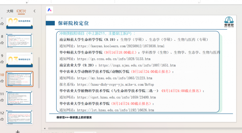 而在夏令营、预推免这场保研核心战役中,保研范的全流程陪跑服务更是把“细致”做到了极致。每年保研季,全国上百所院校的招生简章密集发布,学员很容易在海量信息中迷失方向,甚至错过关键节点。对此,班主任会实时同步全国各大院校的招生动态,结合学员的定位,精准筛选适配的院校与项目,帮学员省去海量信息筛选的时间;每一个项目的投递,老师都会帮学员逐一核对全套申请材料,从内容完整性、格式规范性,到院校要求的命名规则、装订方式,全部严格核对,确保零失误,避免学员因为细节问题错失入营机会。