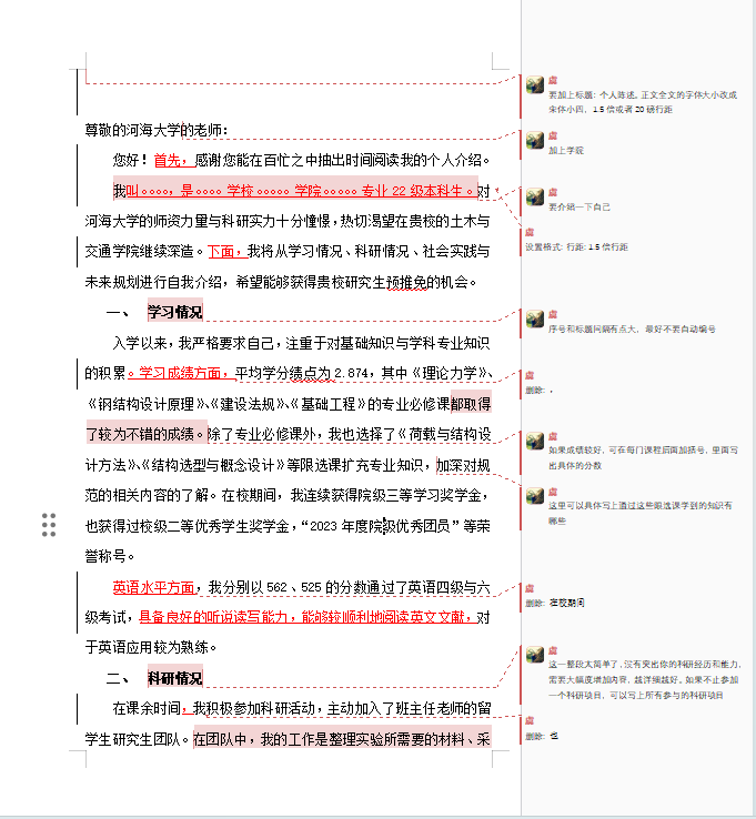文书是保研的“敲门砖”,也是保研范服务的核心亮点之一。不同于市面上简单的语法润色、格式修改,保研范的文书打磨采用“1对1深度访谈+多轮全流程打磨+一校一稿定制”的模式。学科导师会先与学员进行深度沟通,逐字逐句挖掘学员科研、竞赛、实习经历中的核心亮点,梳理个人成长逻辑与学术潜力,搭建专属的文书框架;从初稿到终稿,一份文书至少要经过3-5轮的打磨修改,大到叙事逻辑、优势凸显,小到一句话的表述、一个数据的呈现、一个标点符号的规范,都会反复推敲。更重要的是,团队会针对不同院校、不同项目的招生偏好,为学员定制专属版本的文书——学术型项目重点突出科研能力与学术潜力,专硕项目重点聚焦实践能力与职业规划,真正做到精准匹配招生需求,让学员的材料在海量申请中脱颖而出。